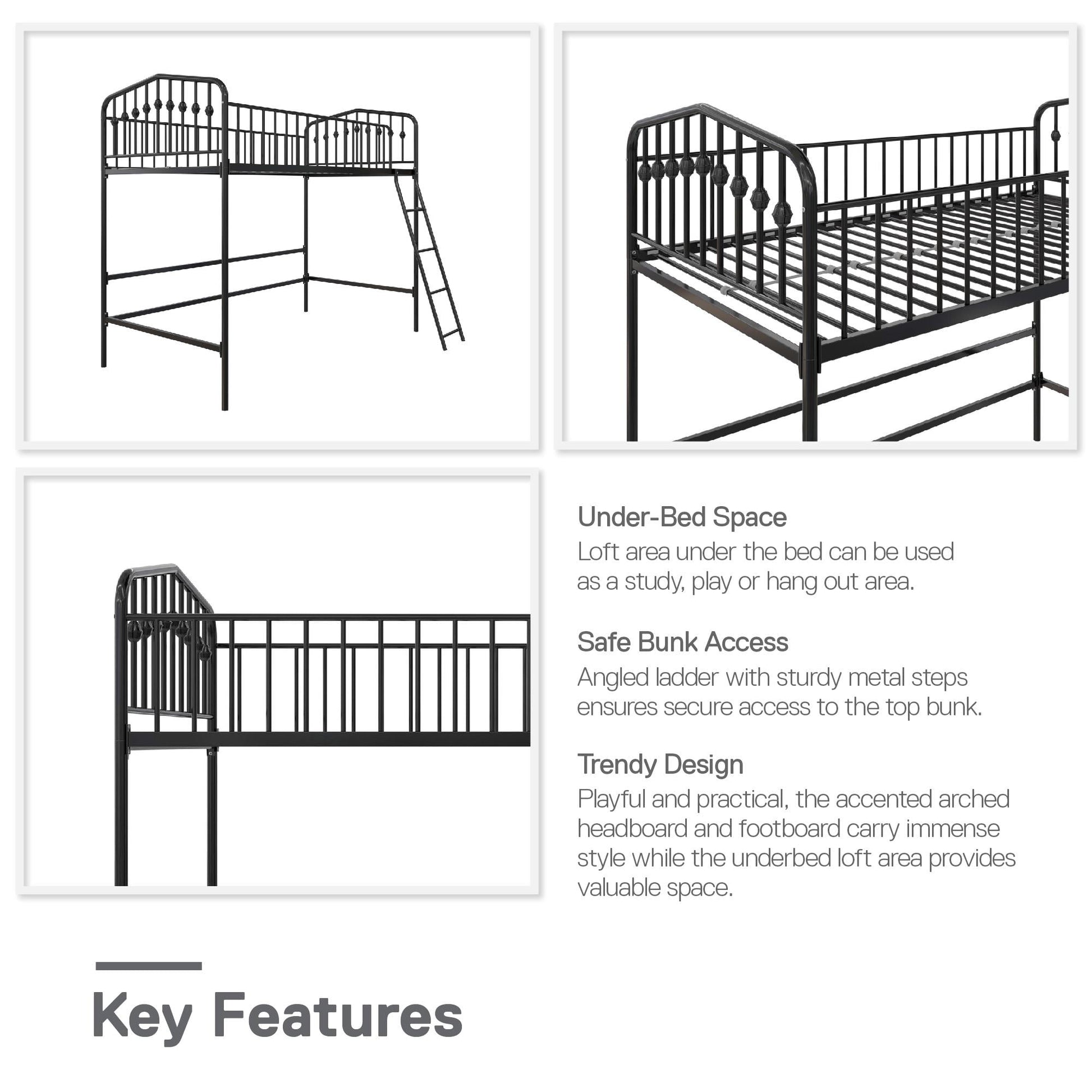 Novogratz Bushwick Metal Twin Loft Bed, Black