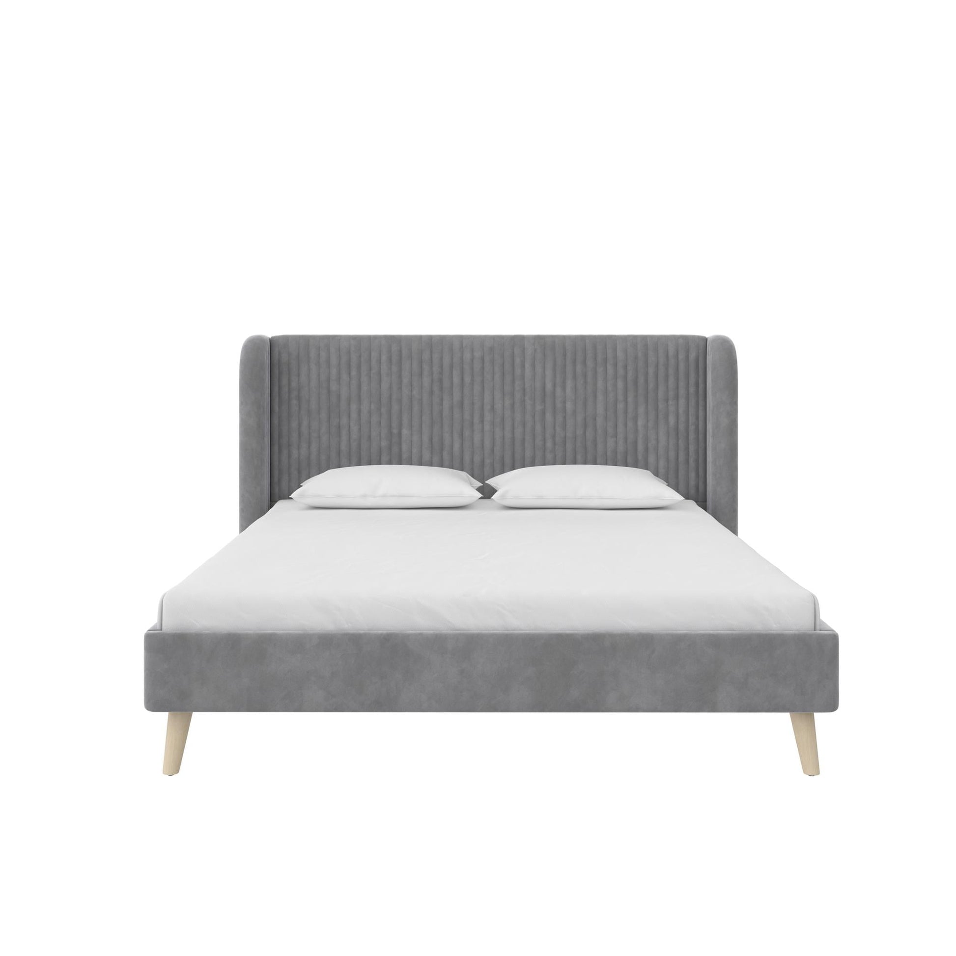 Novogratz Holly Upholstered Wingback Bed, Queen, Light Gray Velvet