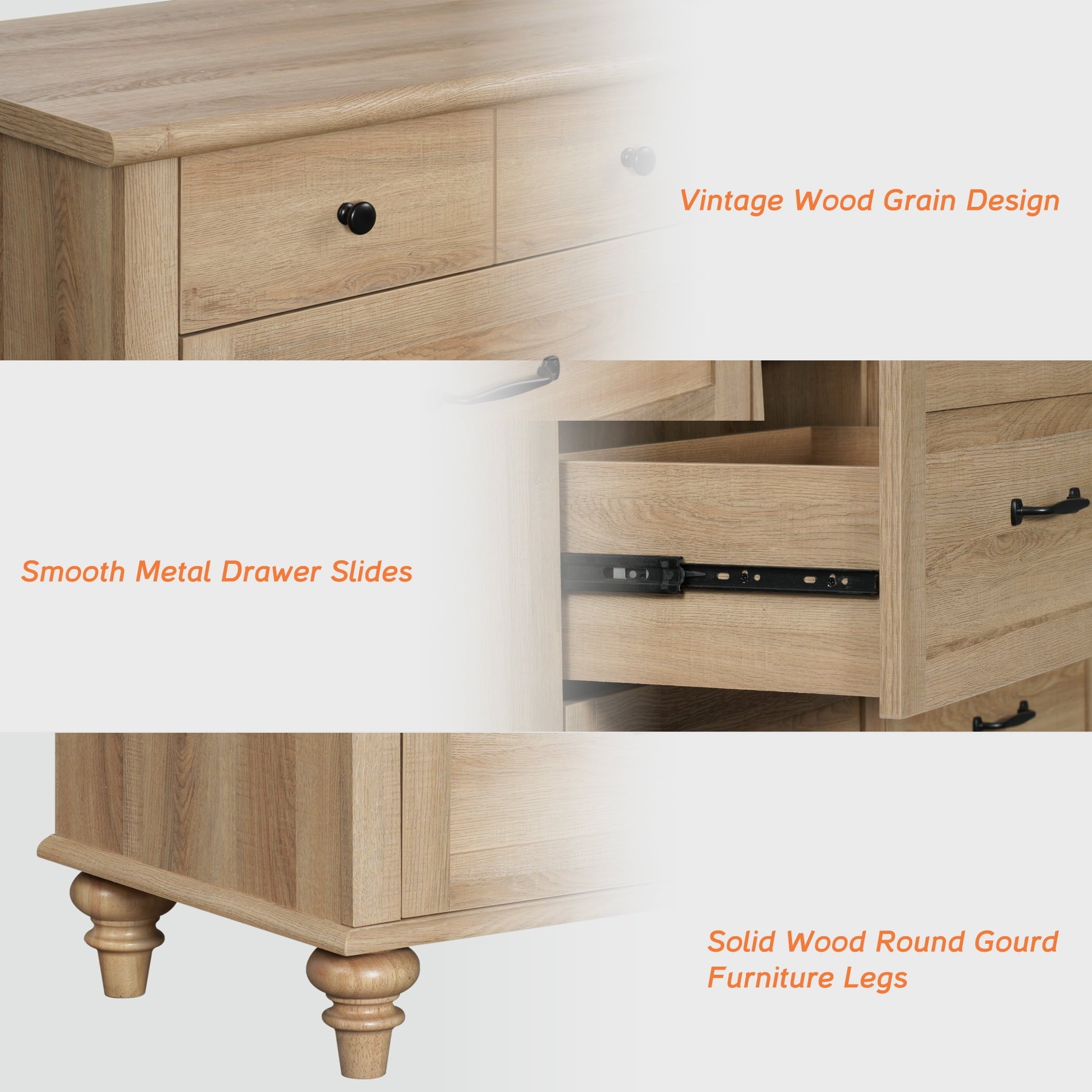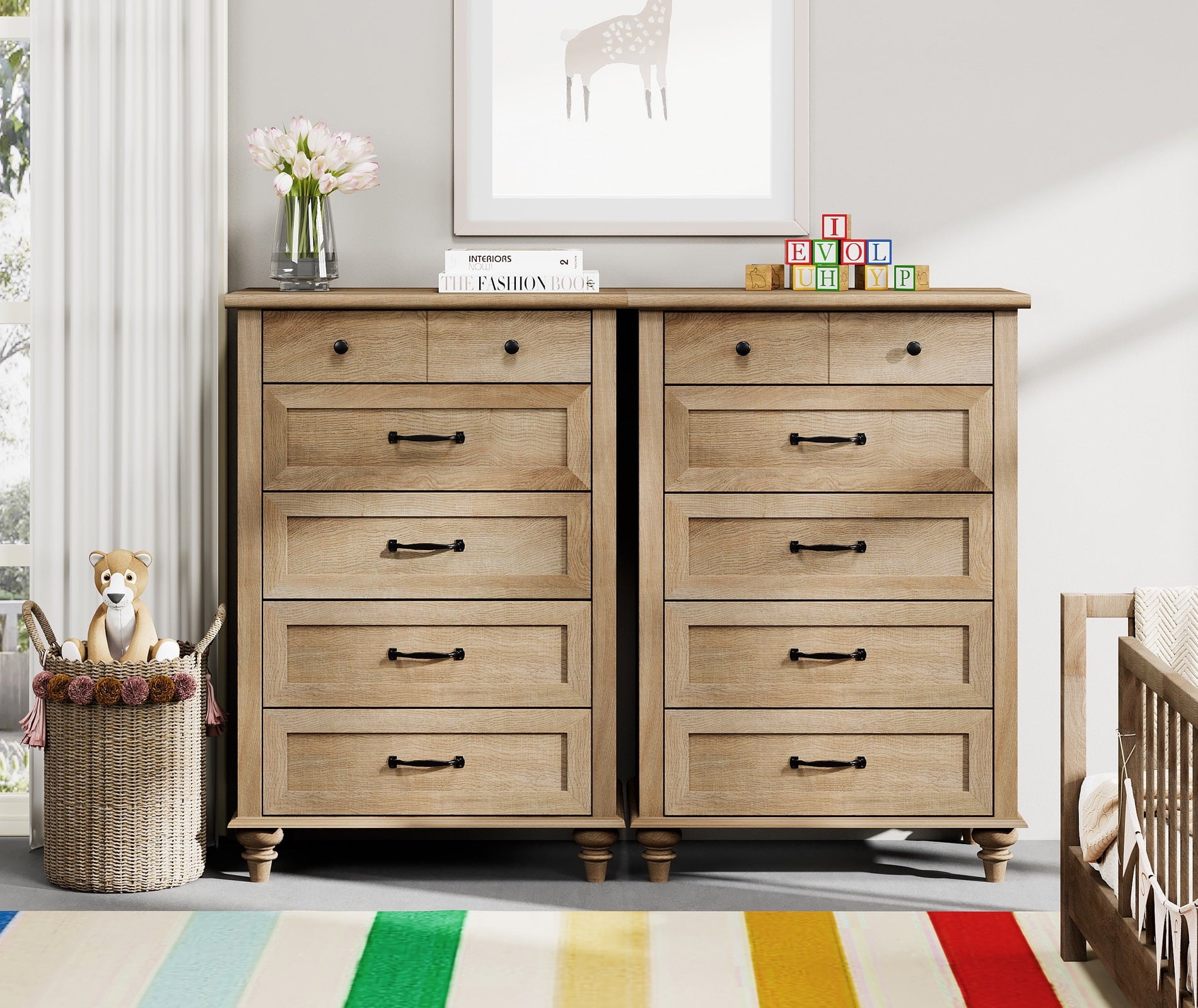 Oak Kids Dresser for Bedroom with 10 Wide Chest of Drawers, Wood Dressers for Living Room, Nursery, Hallway,White
