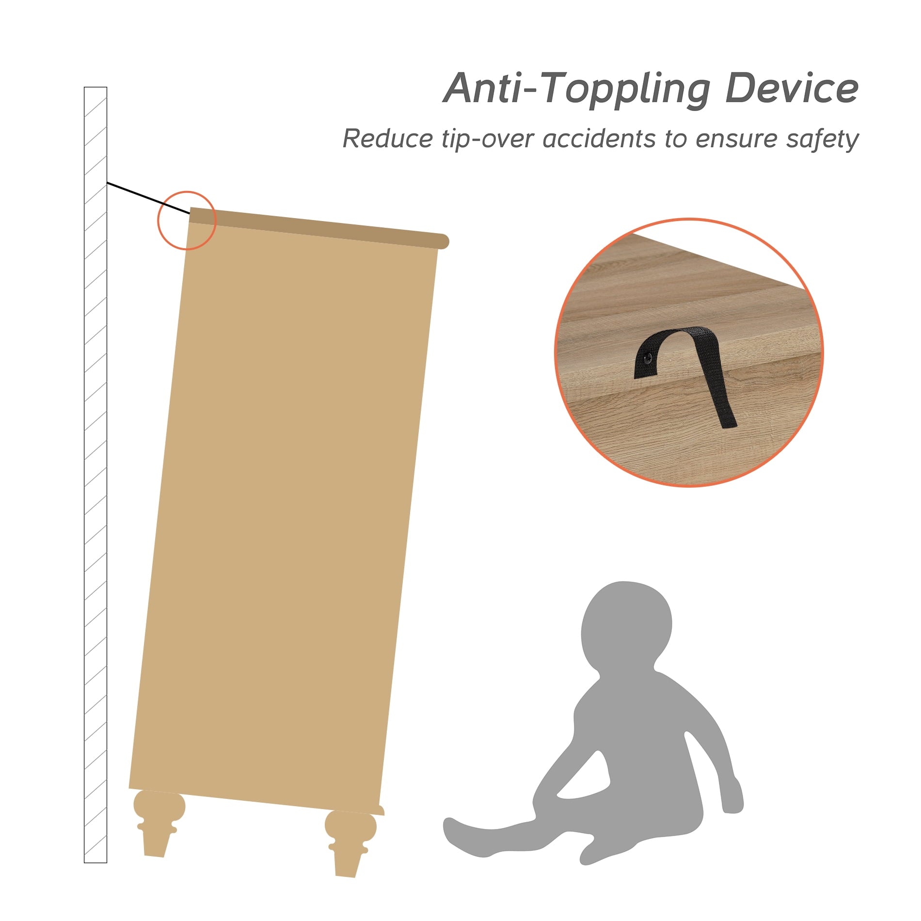 Equipped with smooth metal drawer slides and handles, the drawers of the closet dresser are effortless to open and close. And the wood dresser is secured by anti-dropping device to reduce tip-over accident for more safety.