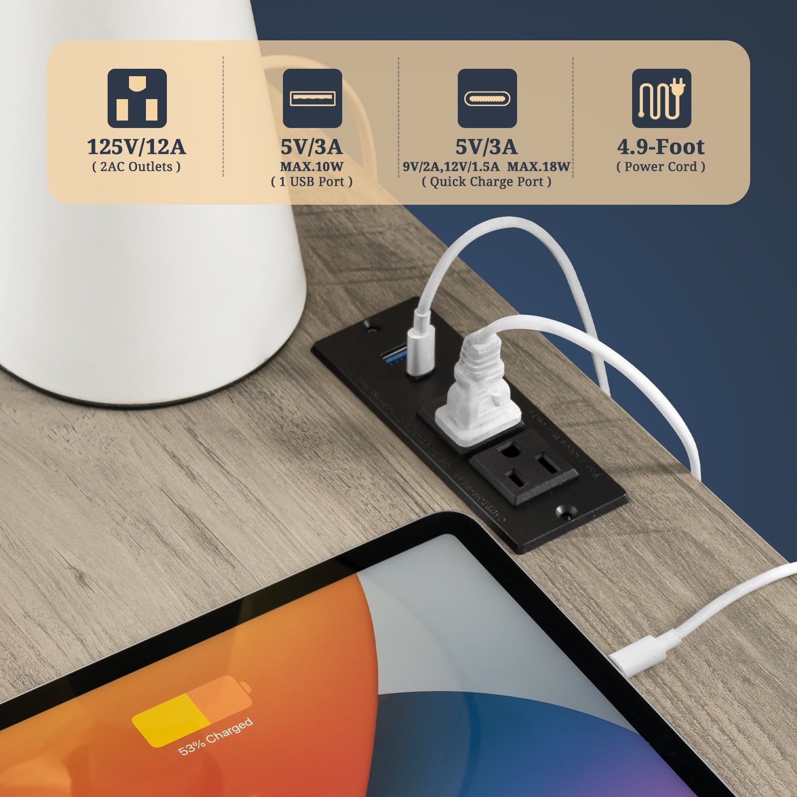 - Maintain the power of your essential devices and have them at your fingertips with our practical coffee table equipped with a built-in charging station. With 2 USB ports and 2 outlets, it allows you to effortlessly charge multiple devices simultaneously. The 4.9ft power cord provides the flexibility to position the charging nightstand wherever you desire in your bedroom or living room.
