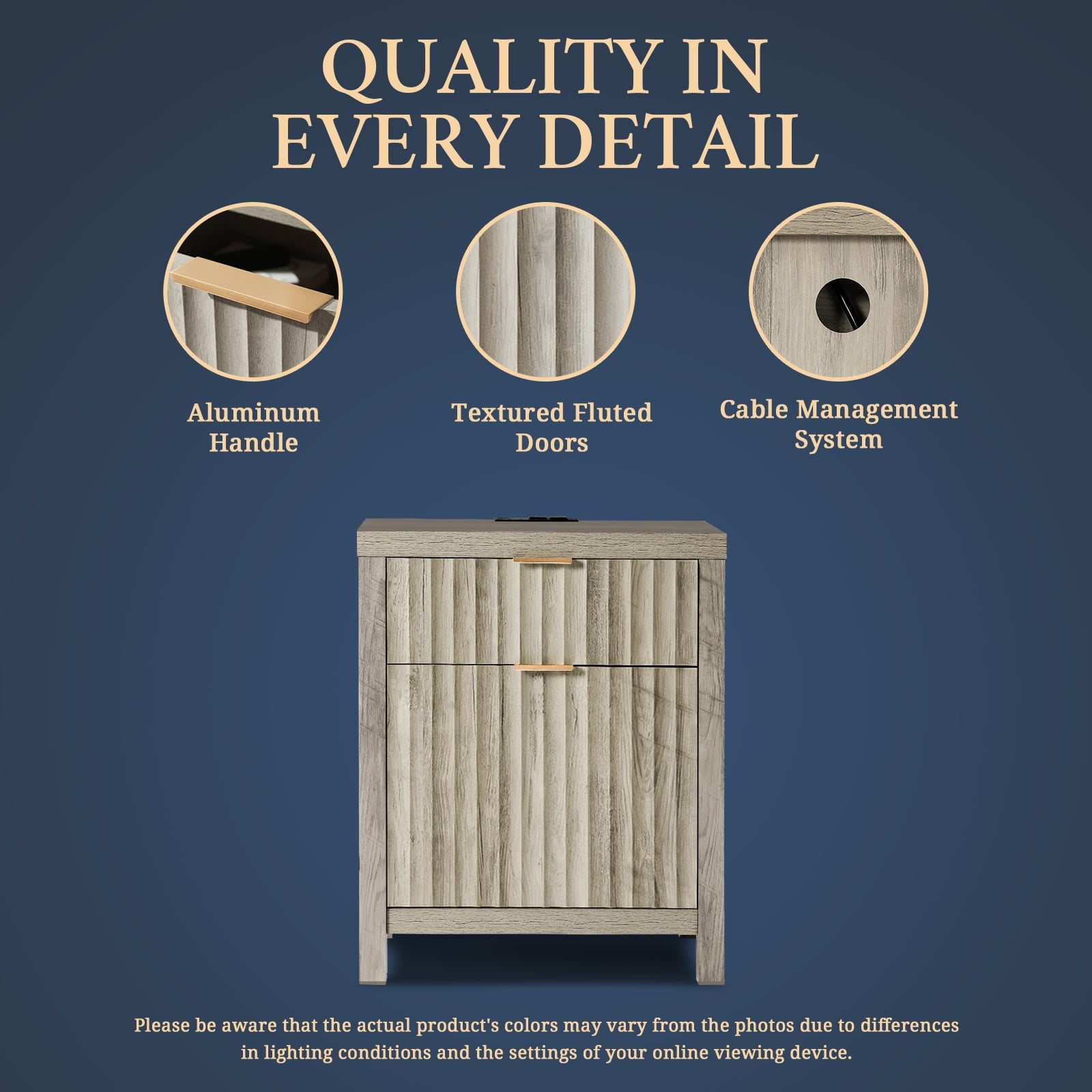 - Drawing from the fluid beauty of nature, the Wave Panel design captures the gentle yet powerful rhythm of natural elements. Complemented by durable rose gold aluminum handles, this nightstand combines nature's grace and lasting strength, offering an enduring and exquisite addition to any space.
