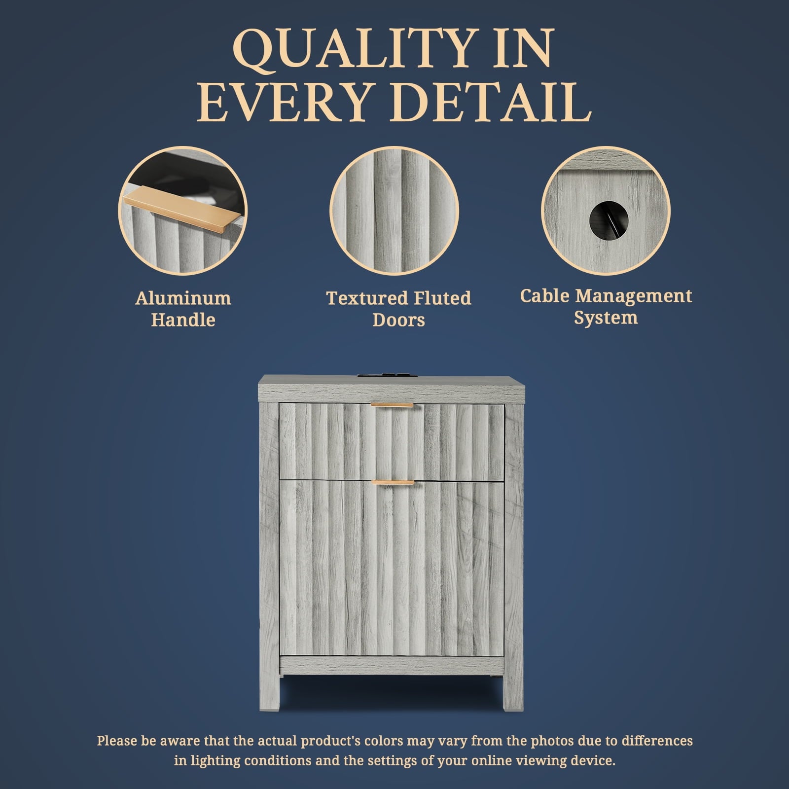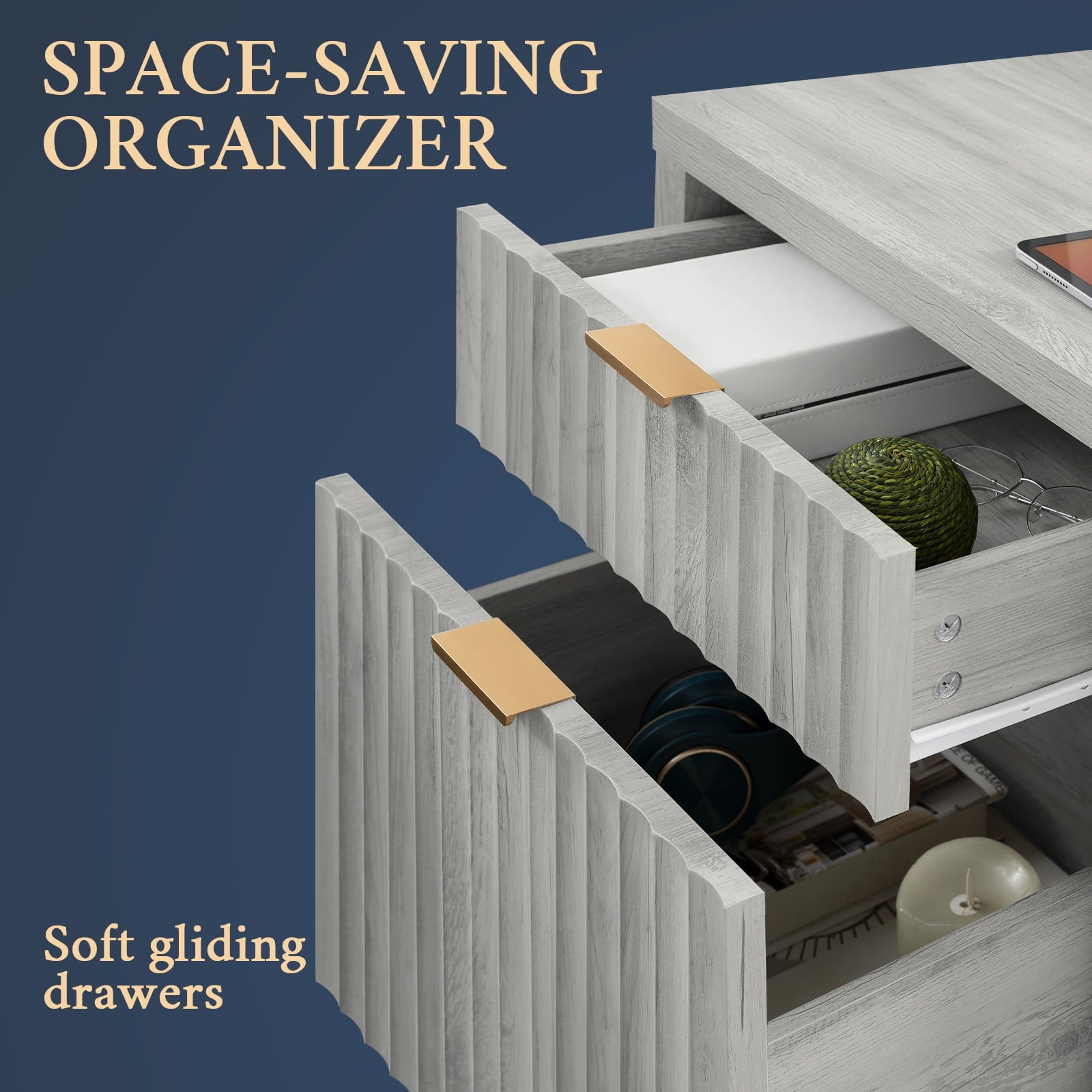 - Drawing from the fluid beauty of nature, the Wave Panel design captures the gentle yet powerful rhythm of natural elements. Complemented by durable rose gold aluminum handles, this nightstand combines nature's grace and lasting strength, offering an enduring and exquisite addition to any space.