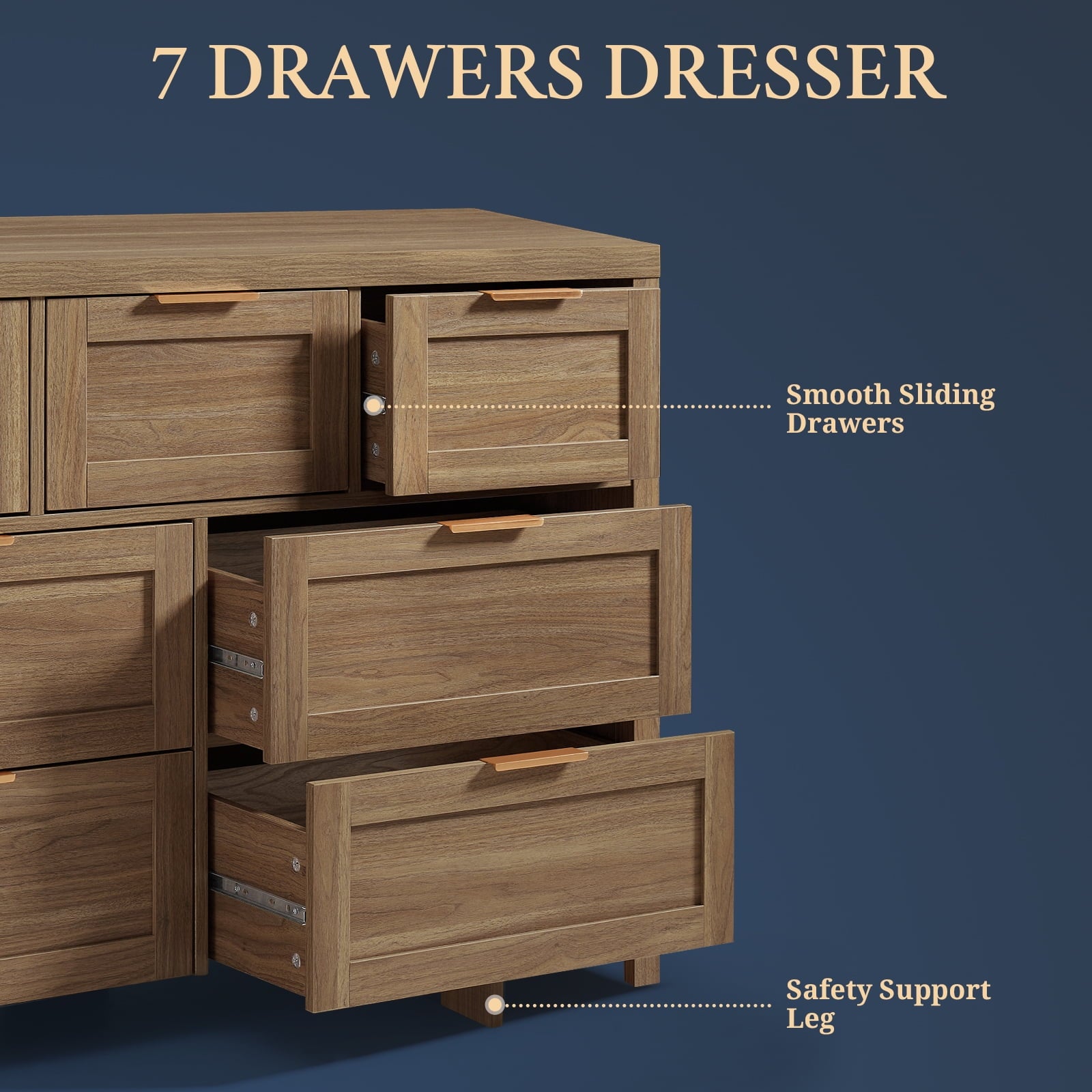 OAKHAM 7 Drawer Dresser, Wooden Chest of Drawers for Bedroom Living Room, Walnut