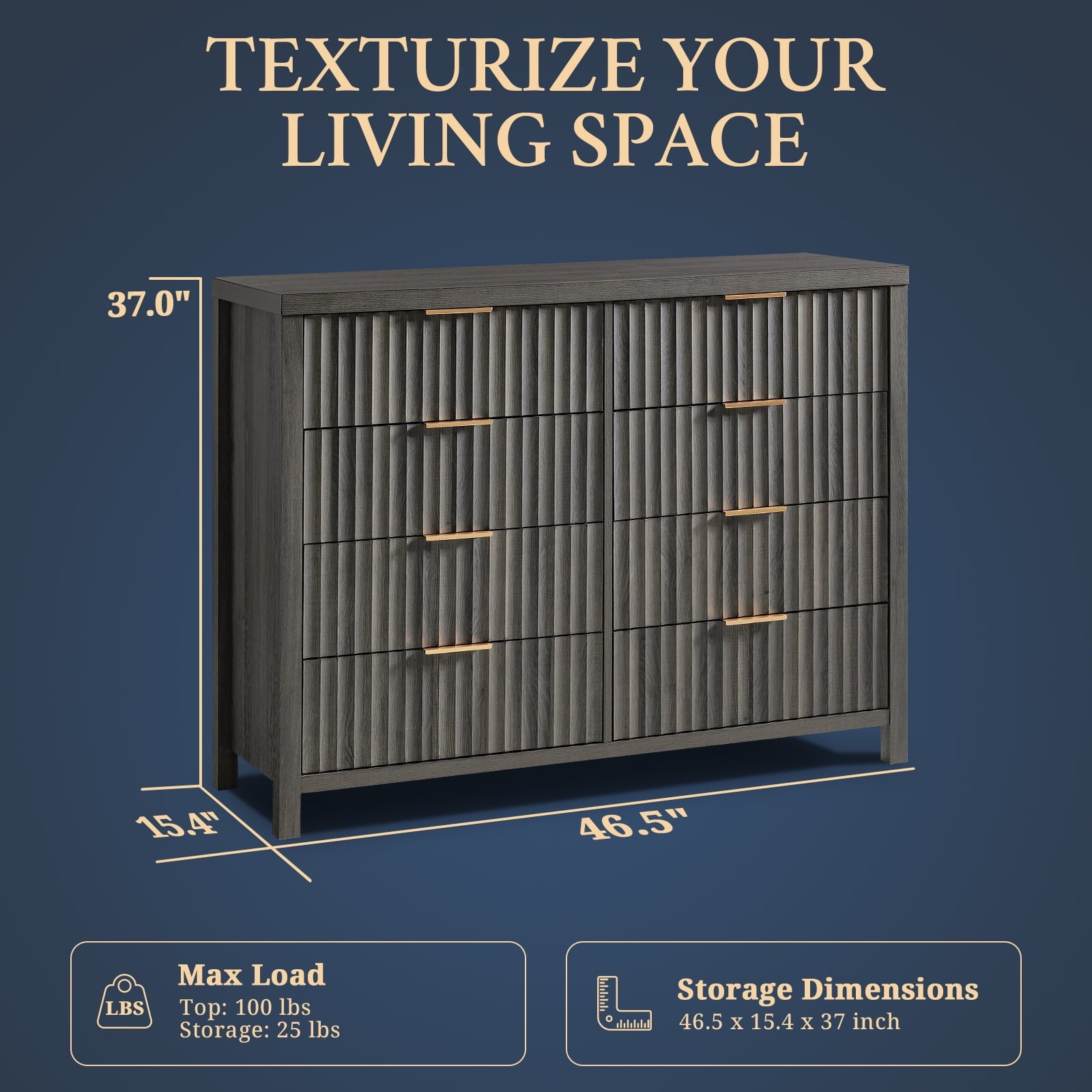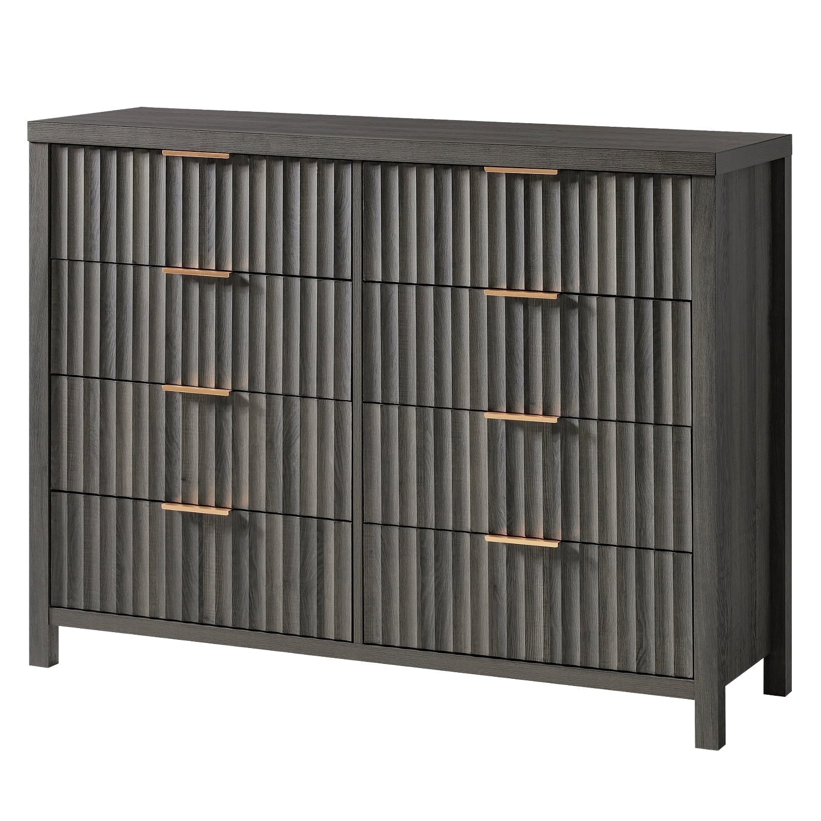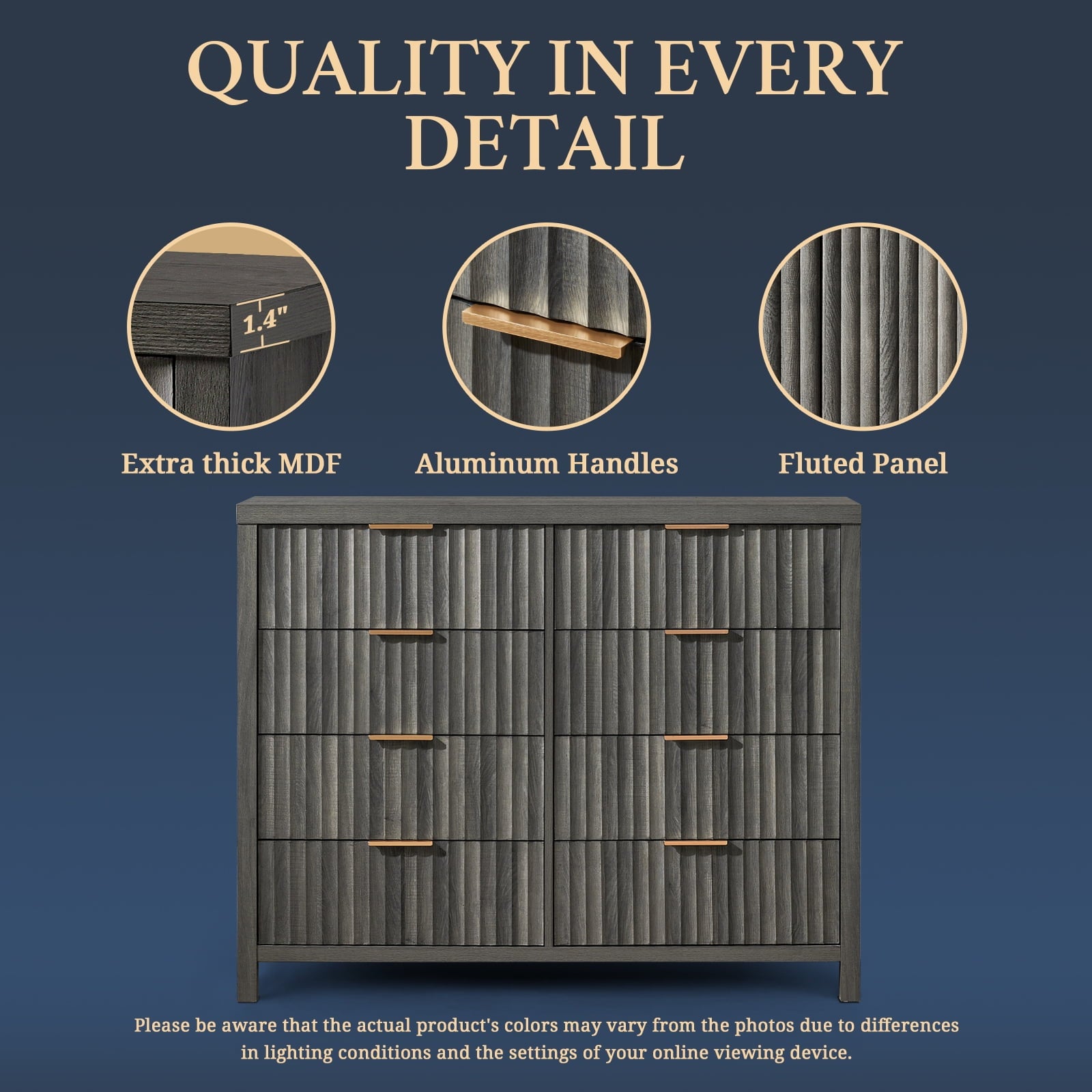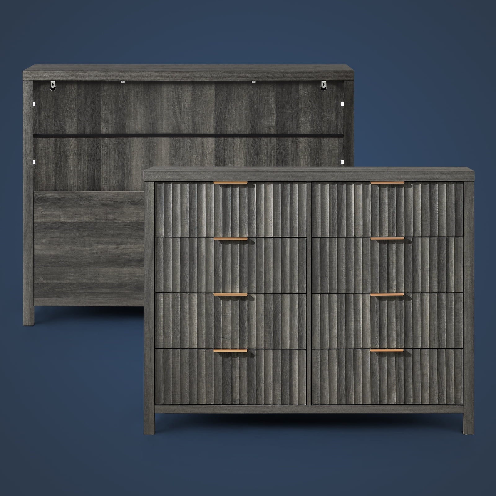 OAKHAM 8 Drawer Dresser, Fluted Wide Chest of Drawers for Bedroom Living Room, Midnight Oak