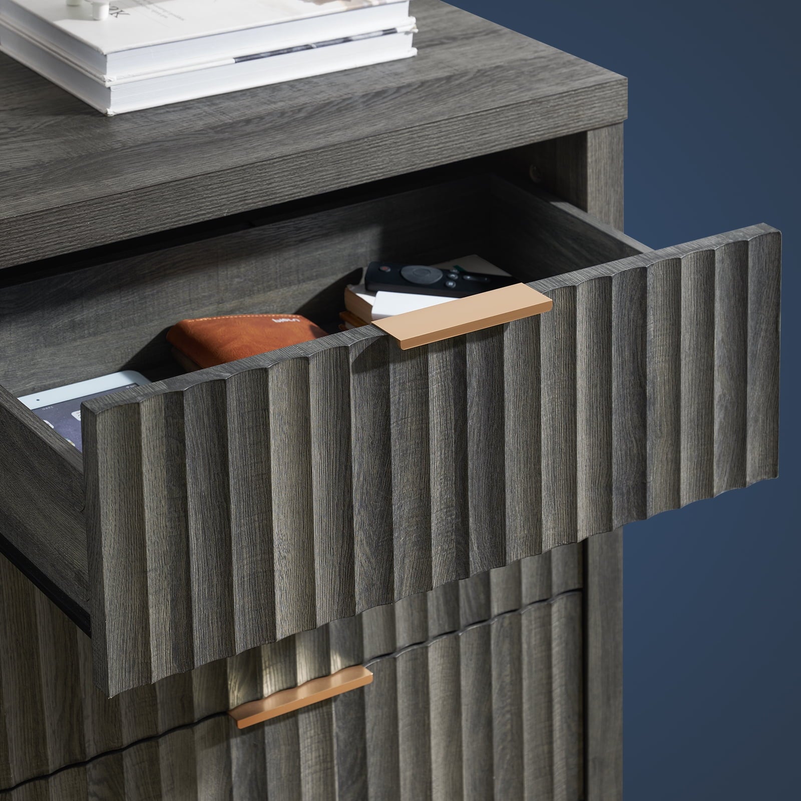 - Elegant Fluted Design: This 8-drawer dresser showcases a sophisticated fluted panel design, adding texture and visual interest to your space. The natural wood tones, paired with rose gold handles, create an elegant contrast that complements a variety of decor styles, making it a versatile addition to any room.