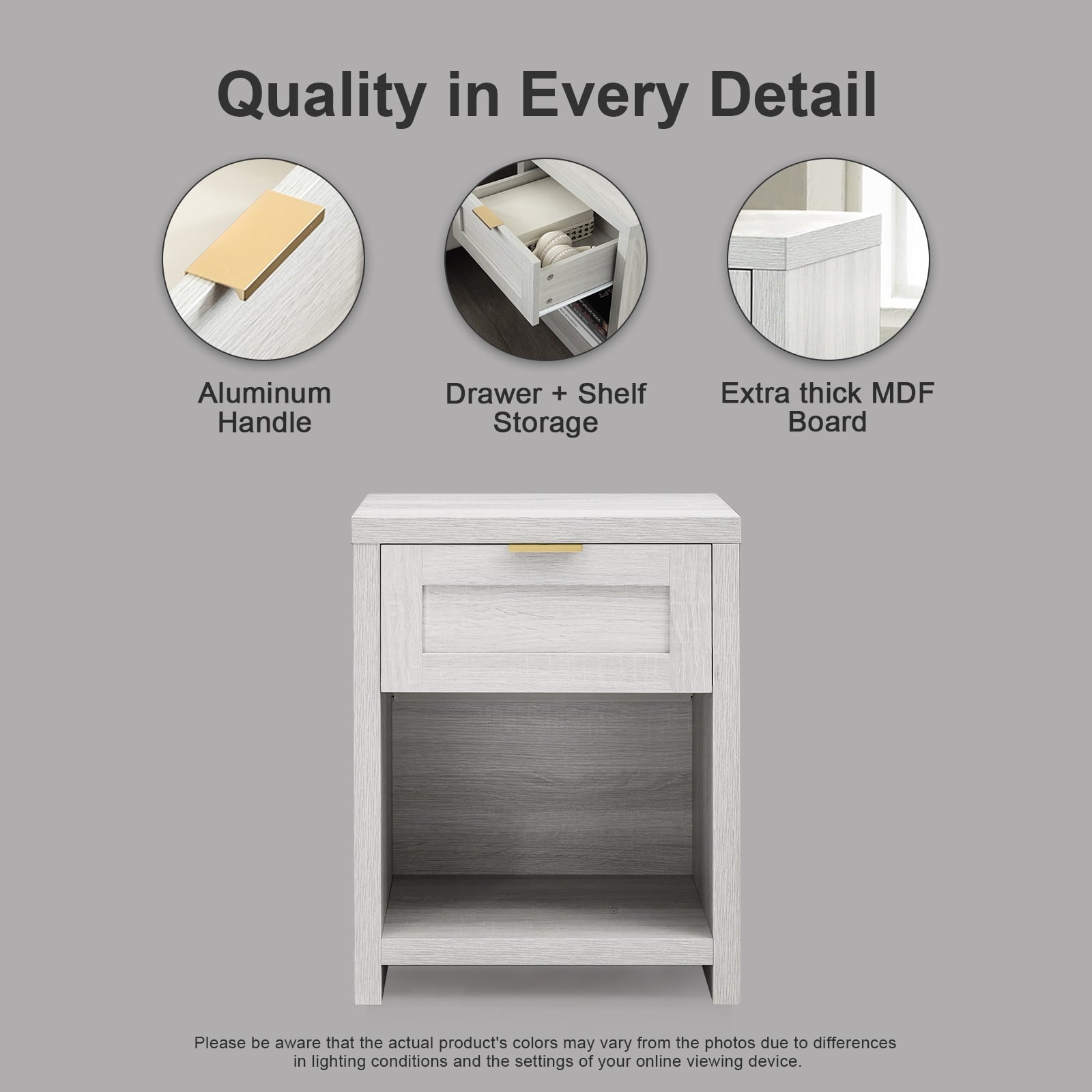 Enhance your home with the rustic charm of the OAKHAM modern farmhouse night stands for bedroom set of 2. Crafted from 1.4"-thick MDF board, this nightstand is designed for durability and stability. our wooden bedside table features a drawer and a storage shelf, providing ample space for books, accessories, and other bedside essentials. This versatile piece can serve as a perfect side table in the bedroom or an ideal end table in the living room.