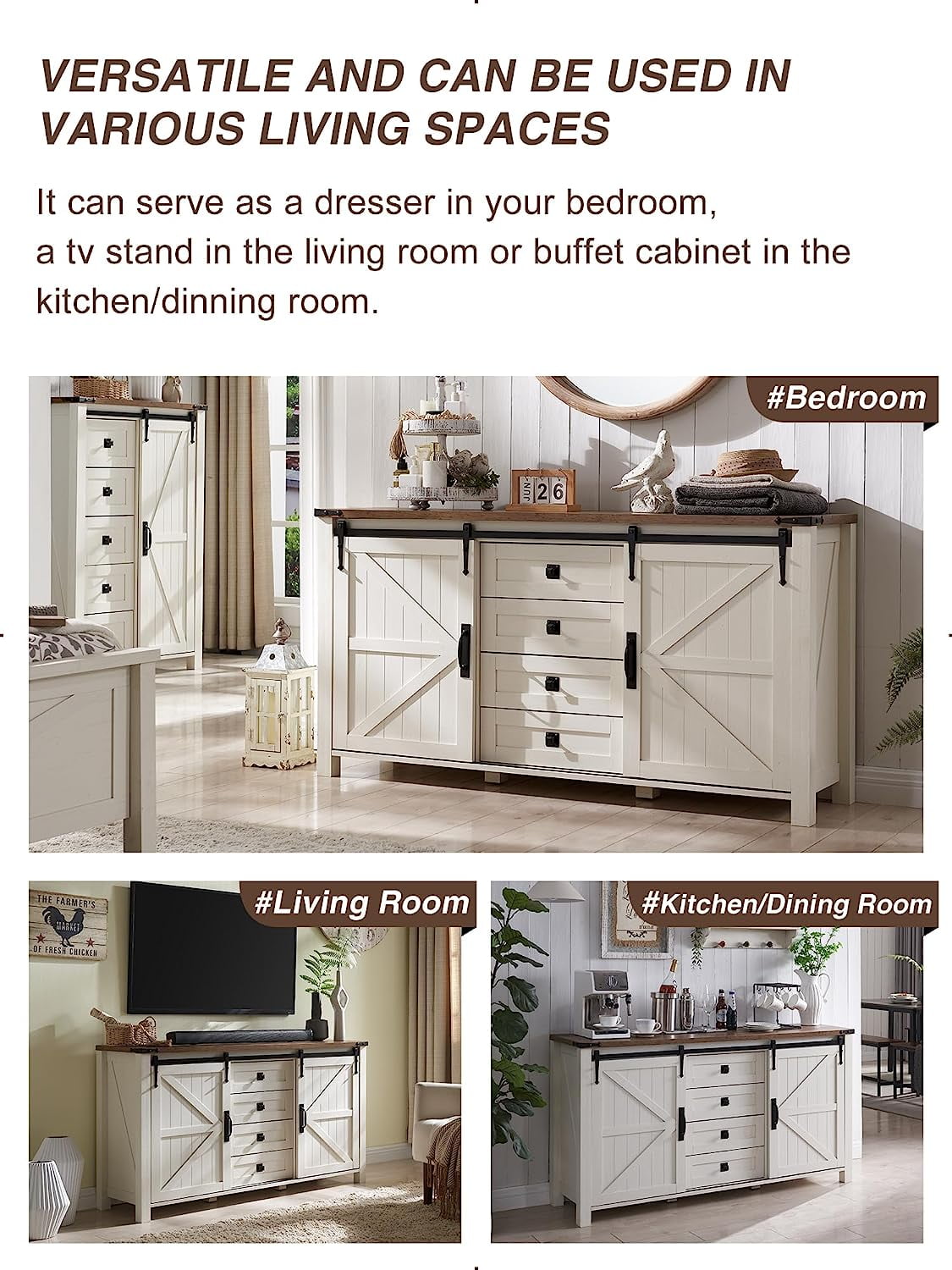 - [MULTIFUNCTION STORAGE ORGANIZER]: This sliding barn door dresser is ideal for wherever to save you from clutter and keep your space neat and tidy, such as the bedroom, nursery, closet, entryway, dorm, living room, or kitchen