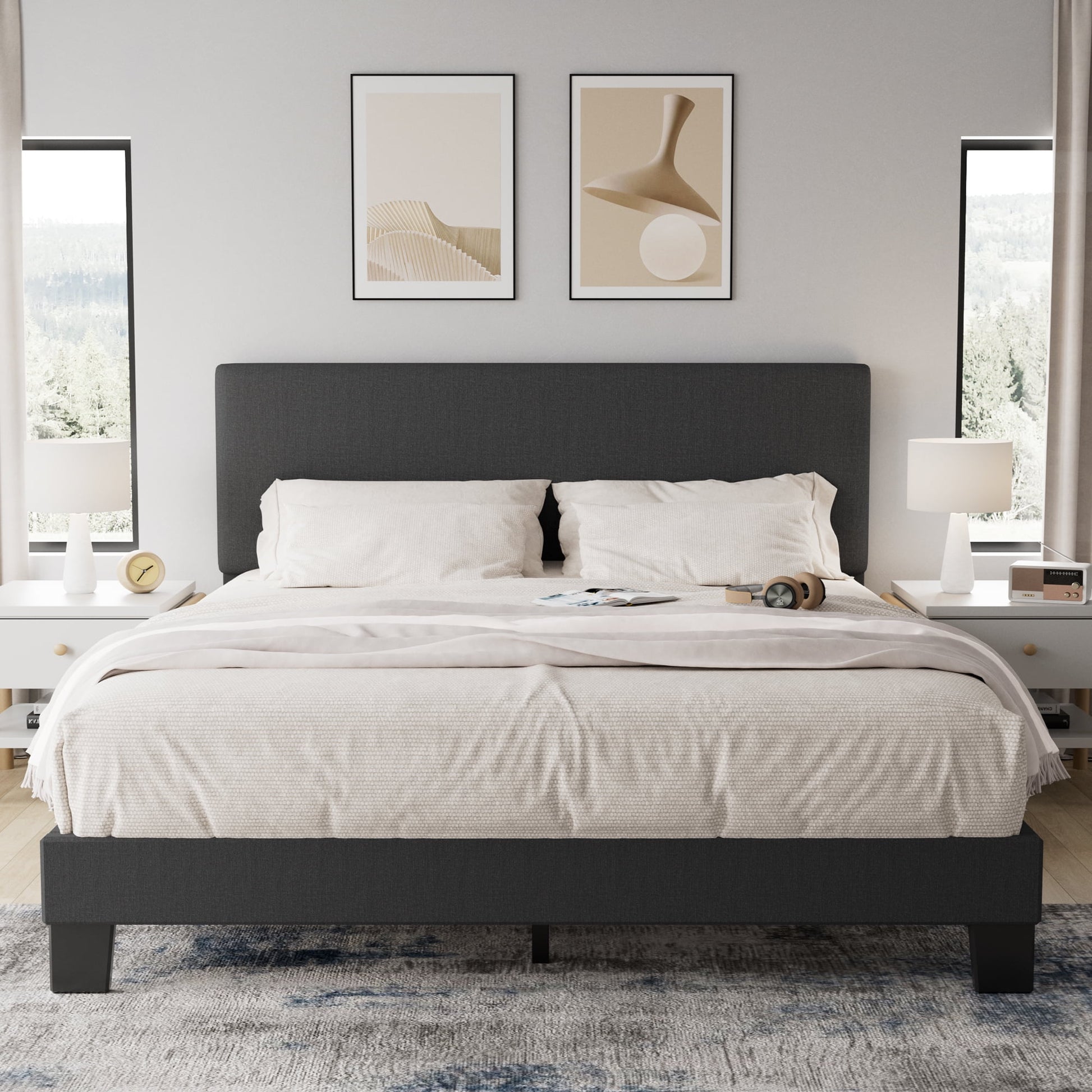 Lifezone Queen Bed Frame, Dark Gray, Adjustable Upholstered Headboard, No Box Spring Needed