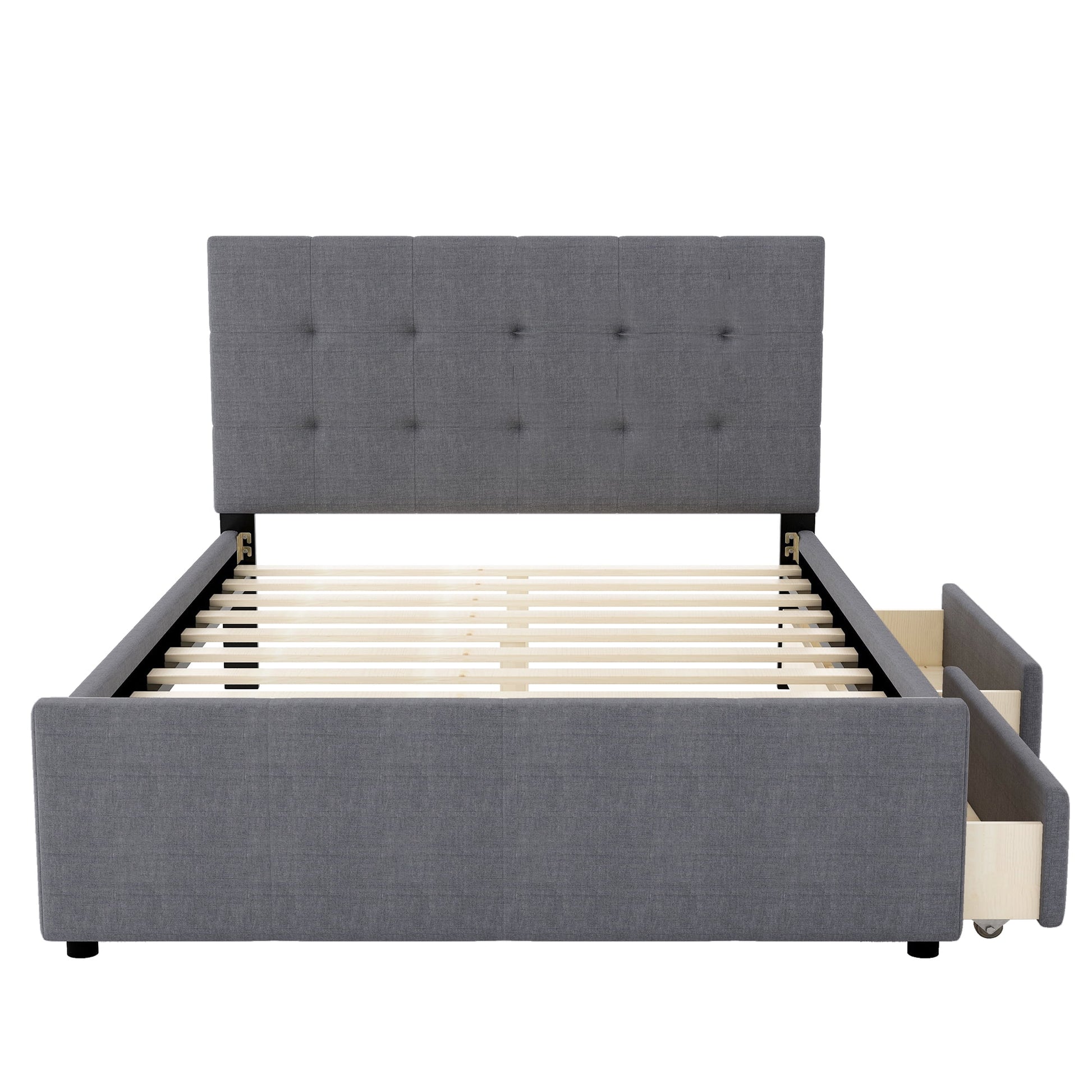 BTMWAY Queen Size Upholstered Linen Platform Bed with Storage, Drawers, No Box Spring Required, Gray