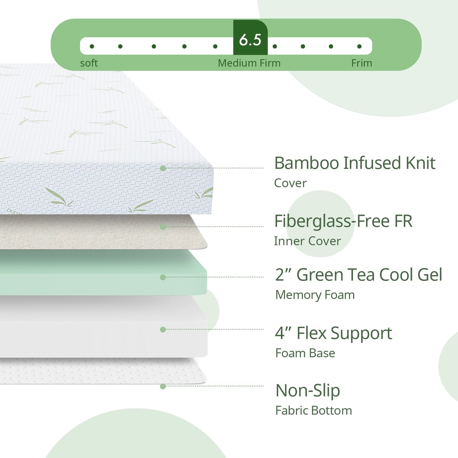 - Breathable and soft cover:Mattresses are made in the USA, crafted of flex support foam and green tea gel-infused memory foam. With a breathable and soft bamboo knit cover, the fabric is smooth and comfortable, highly absorbent, allowing sweat to evaporate easily and keep your skin dry.