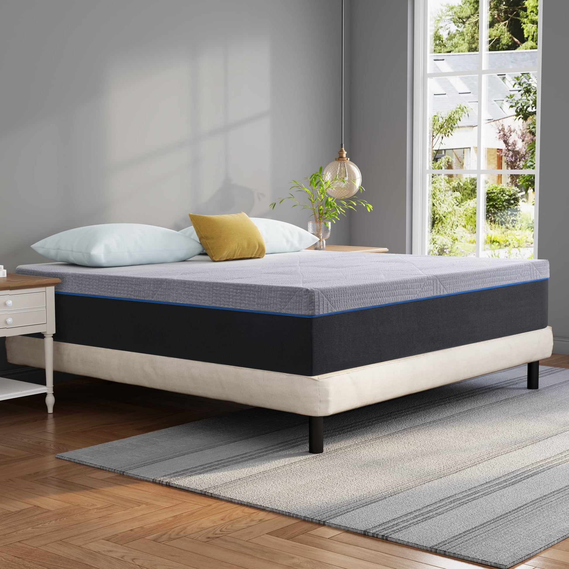 Choose Lecuneey memory foam mattress for quality sleep. It consists of high-density foam that provides great support, perfectly conforms to your body's curves and reduces pressure on your body. The unique sound deadening foam allows you to enjoy a comfortable sleep without noise disturbance. Free air flows into the mattress to keep you cool all night long. In addition, our mattresses are compressed and packaged in an easy-to-transport box that can easily fit through narrow hallways and stairs for all bed frames.