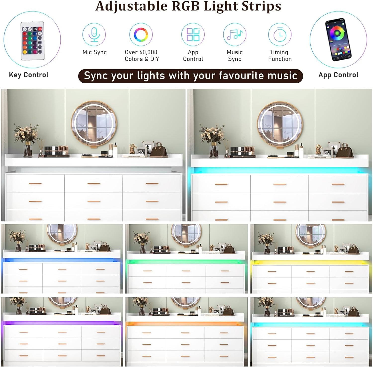 - Stylish and Contemporary Design: With its modern style and sleek appearance, this dresser adds a touch of elegance to any room. The LED light strip on the top adds a stylish and unique feature, creating a warm and inviting atmosphere.