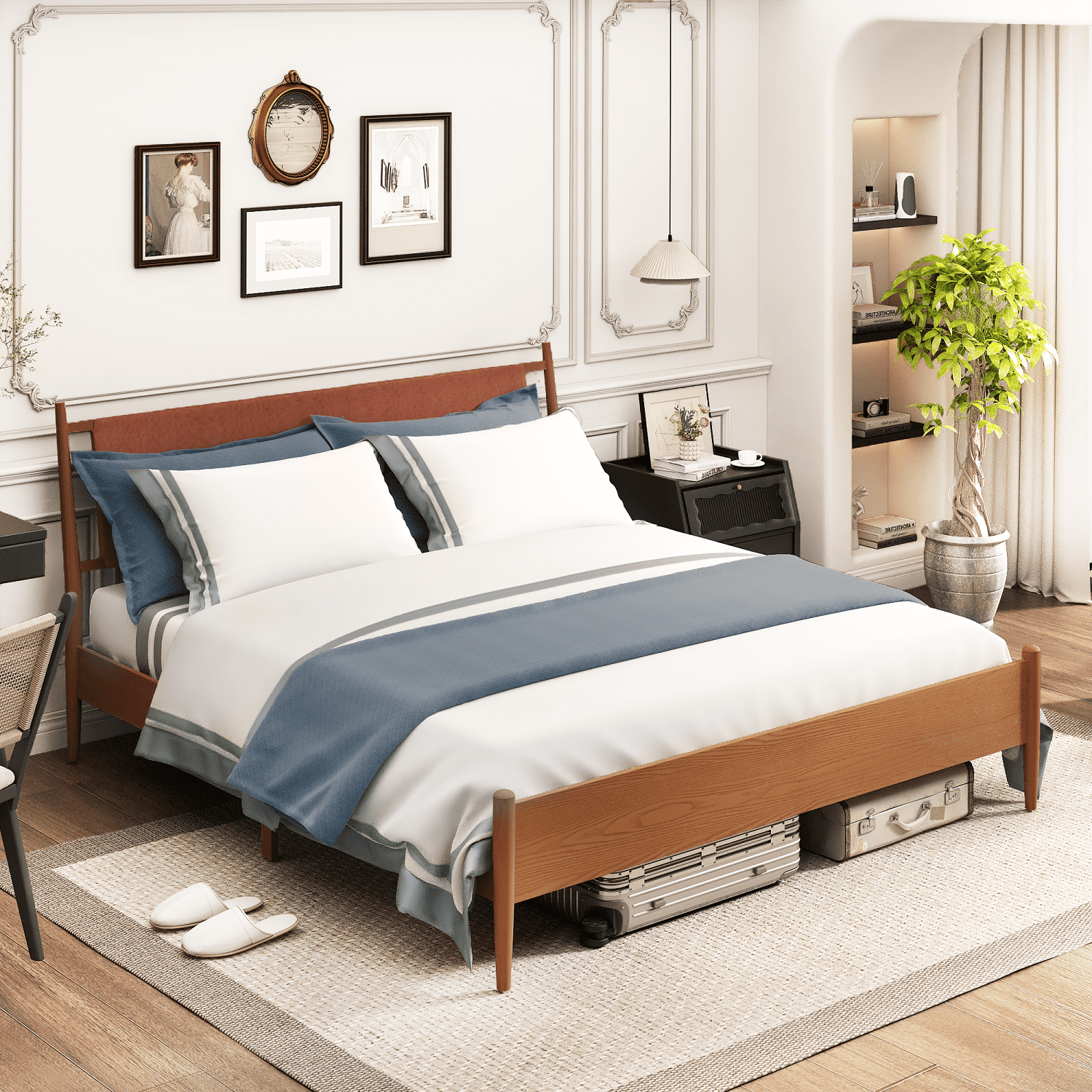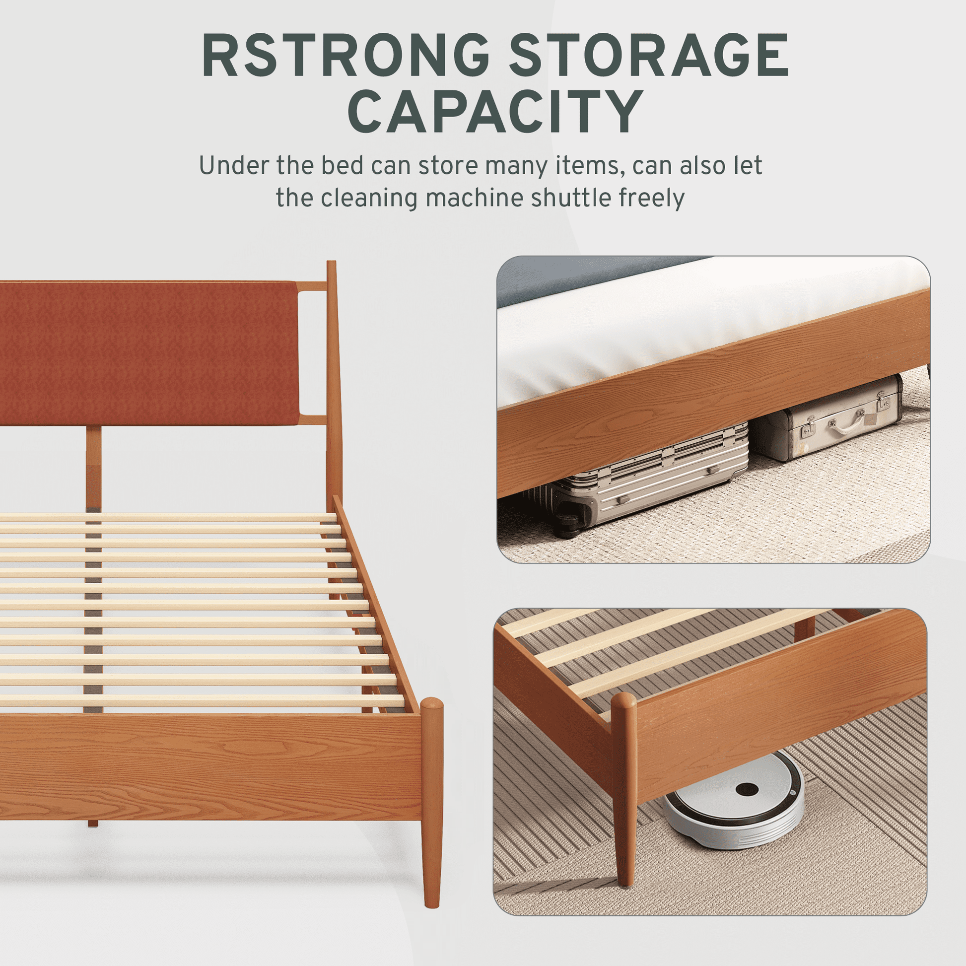 - Powerful storage capacity & solid bed foot - You can store many items under the bed, and you can also shuttle the cleaning machine freely. Our bed frames have strong bed feet, which provide strong support and ensure stability and firmness.Modern design - Natural wood grain textures are paired with delicate antique brown finishes for a vintage and elegant look. Incorporate elements of medieval style into a modern minimalist style of living, making your room more eye-catching and not easy to go out of style.