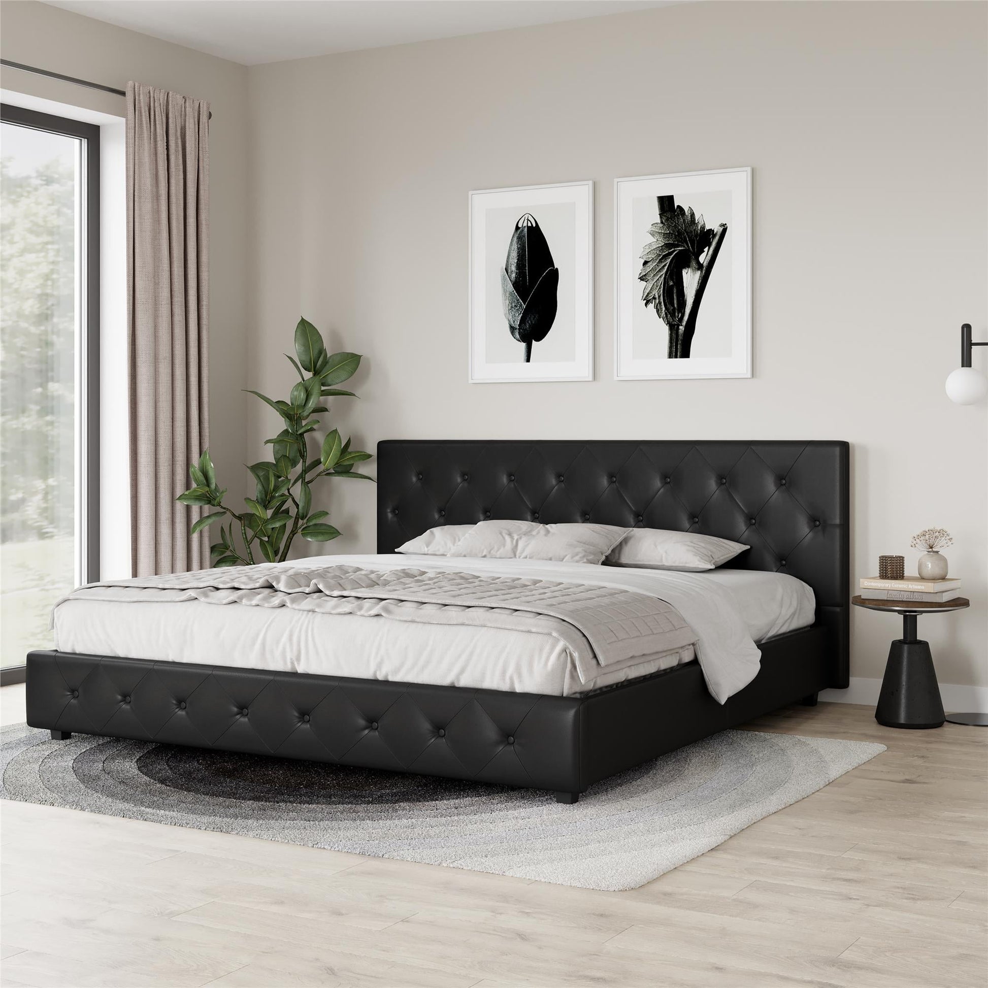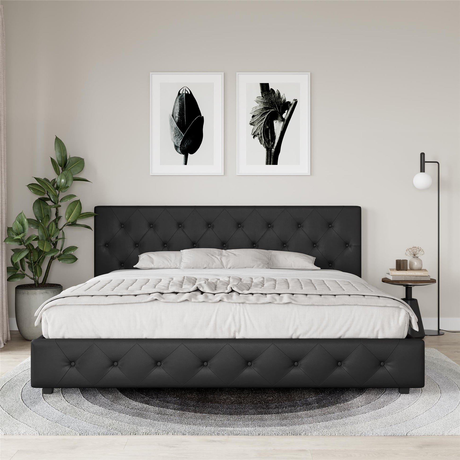 DHP Dakota Tufted Upholstered Storage Bed Frame, King, Black Faux Leather