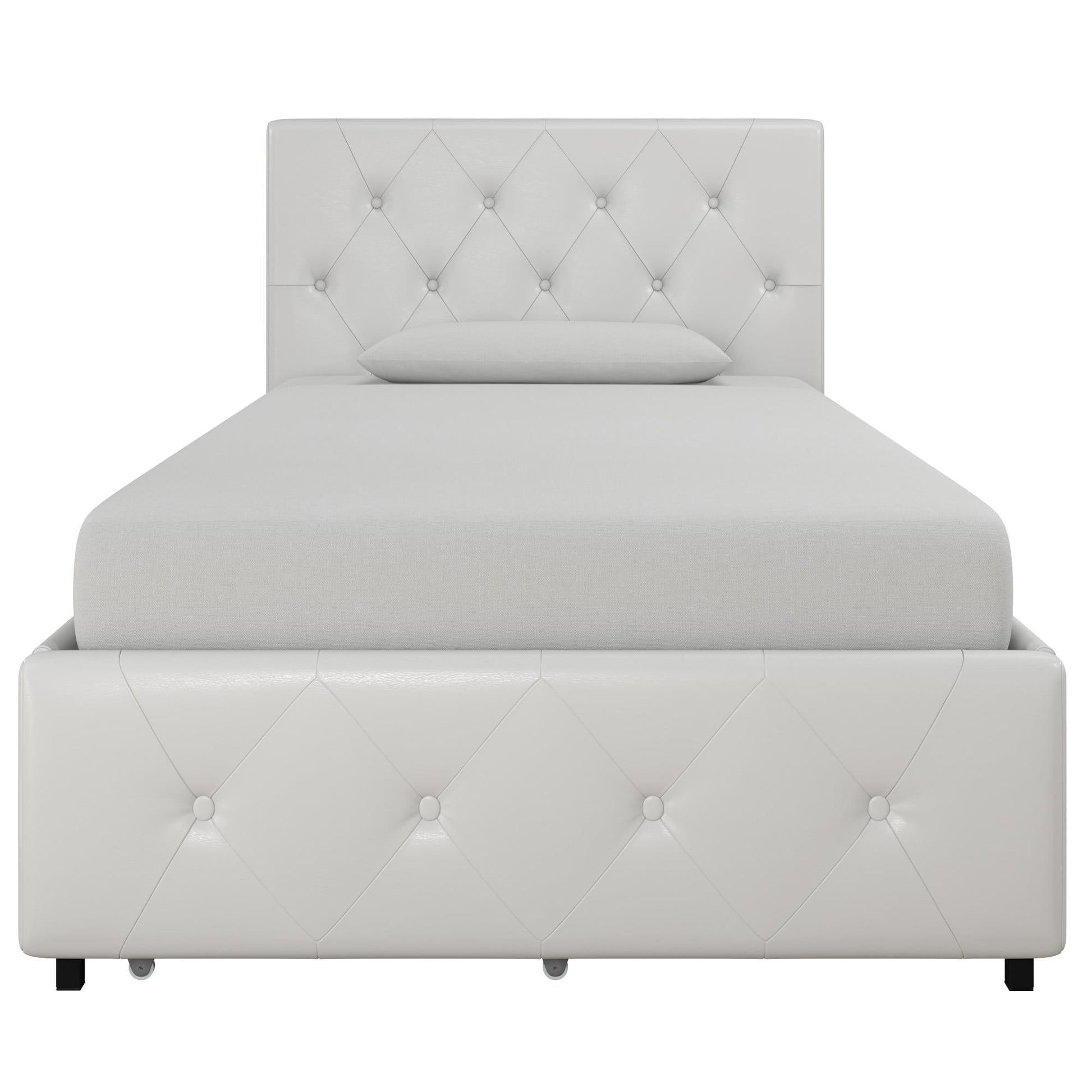 DHP Dakota Tufted Upholstered Storage Bed Frame, Twin, White Faux Leather