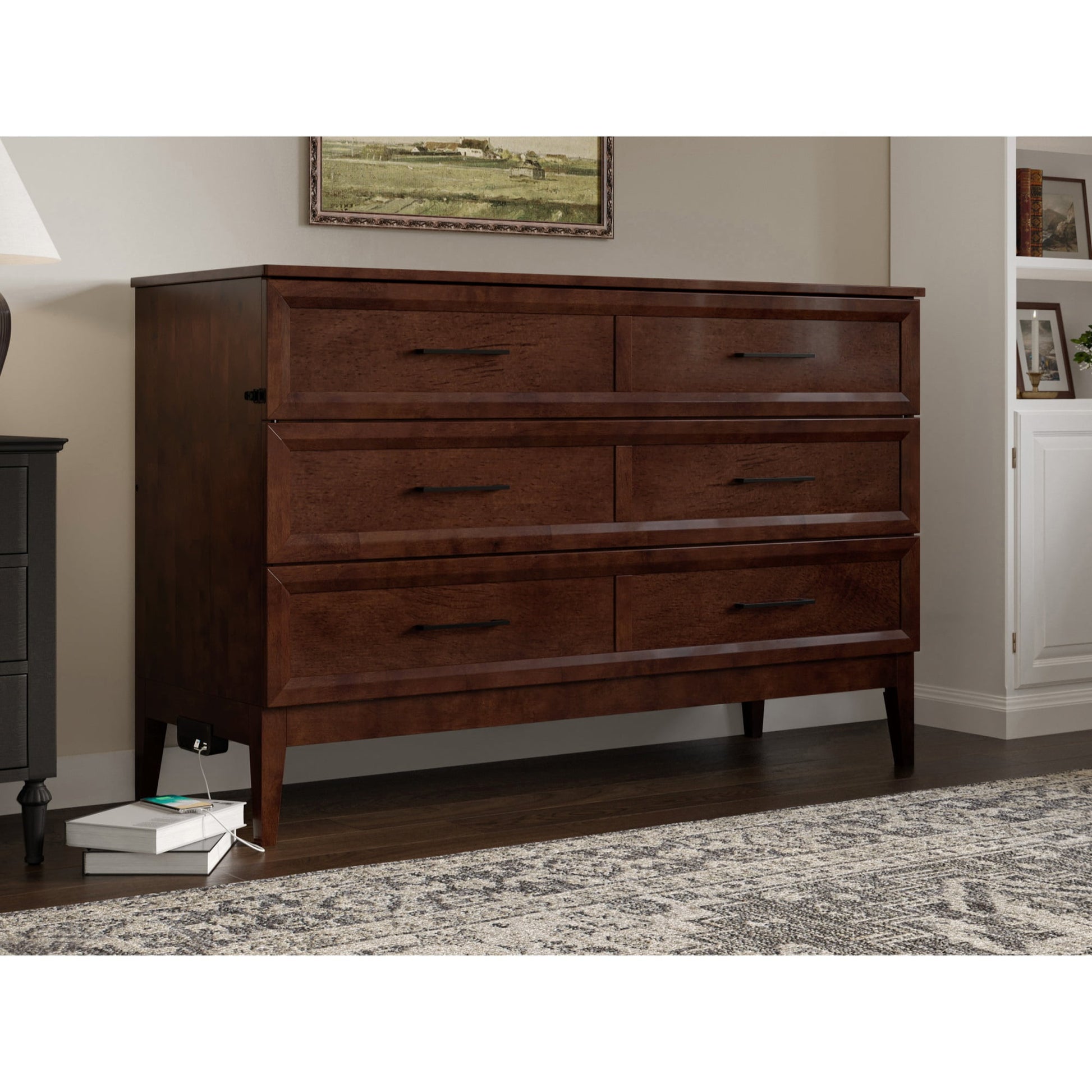 AFI Santa Fe Queen Wood Murphy Bed Chest with Mattress and Built-in Charger, Walnut