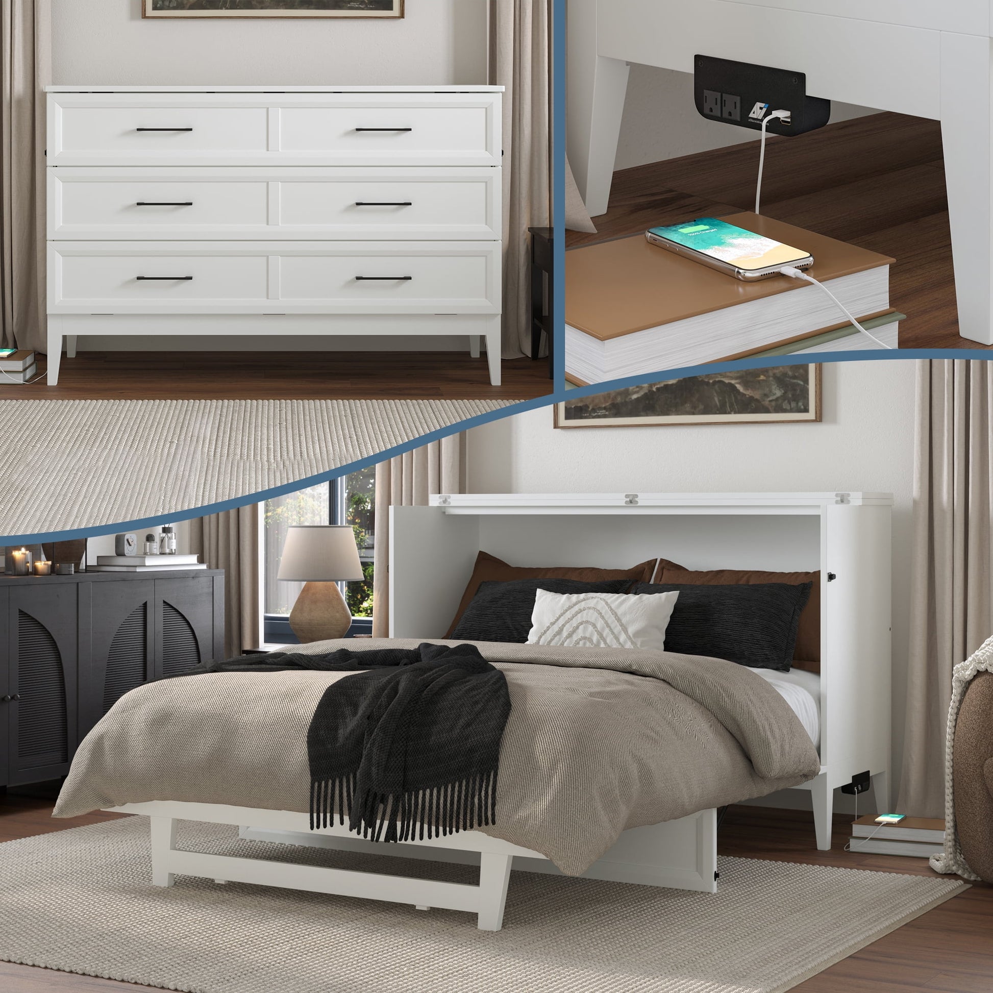 AFI Santa Fe Queen Wood Murphy Bed Chest with Mattress and Built-in Charger, White