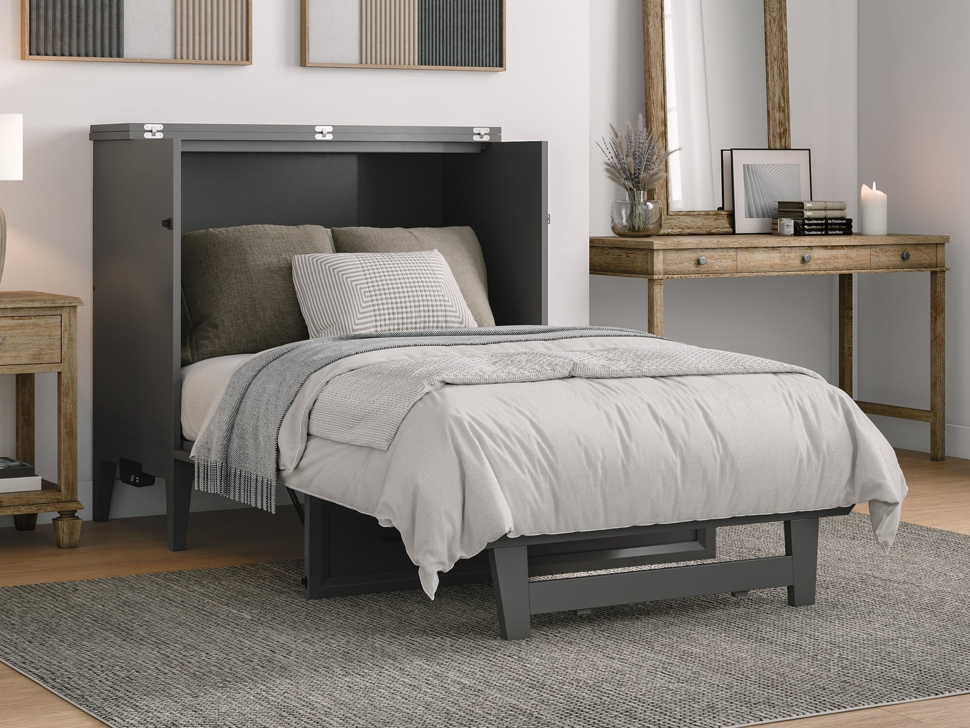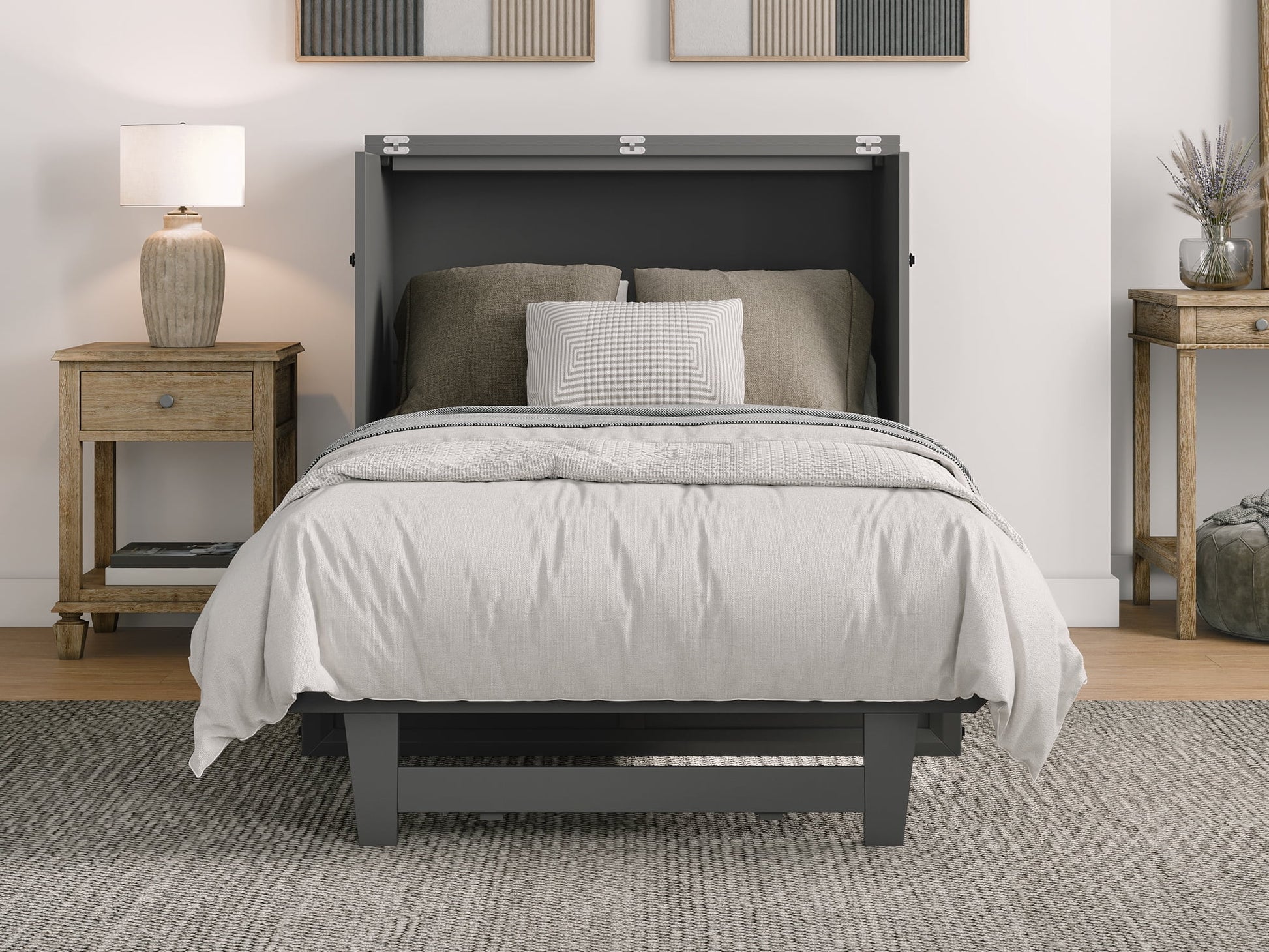 AFI Santa Fe Twin Wood Murphy Bed Chest with Mattress and Built-in Charger, Grey