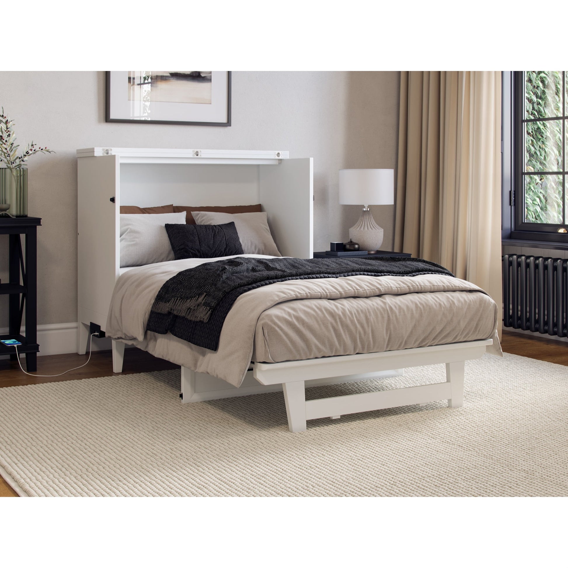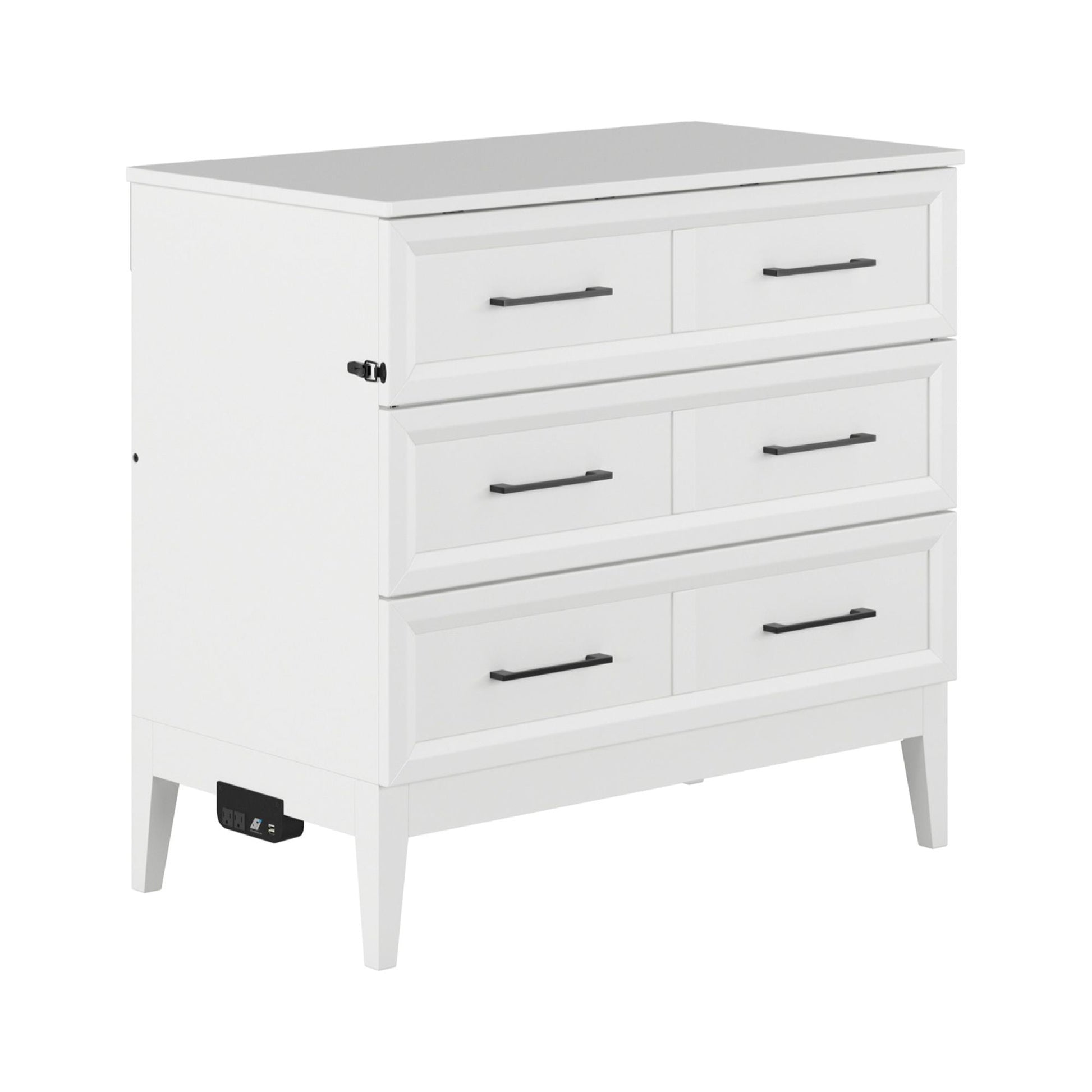 AFI Santa Fe Twin Wood Murphy Bed Chest with Mattress and Built-in Charger, White