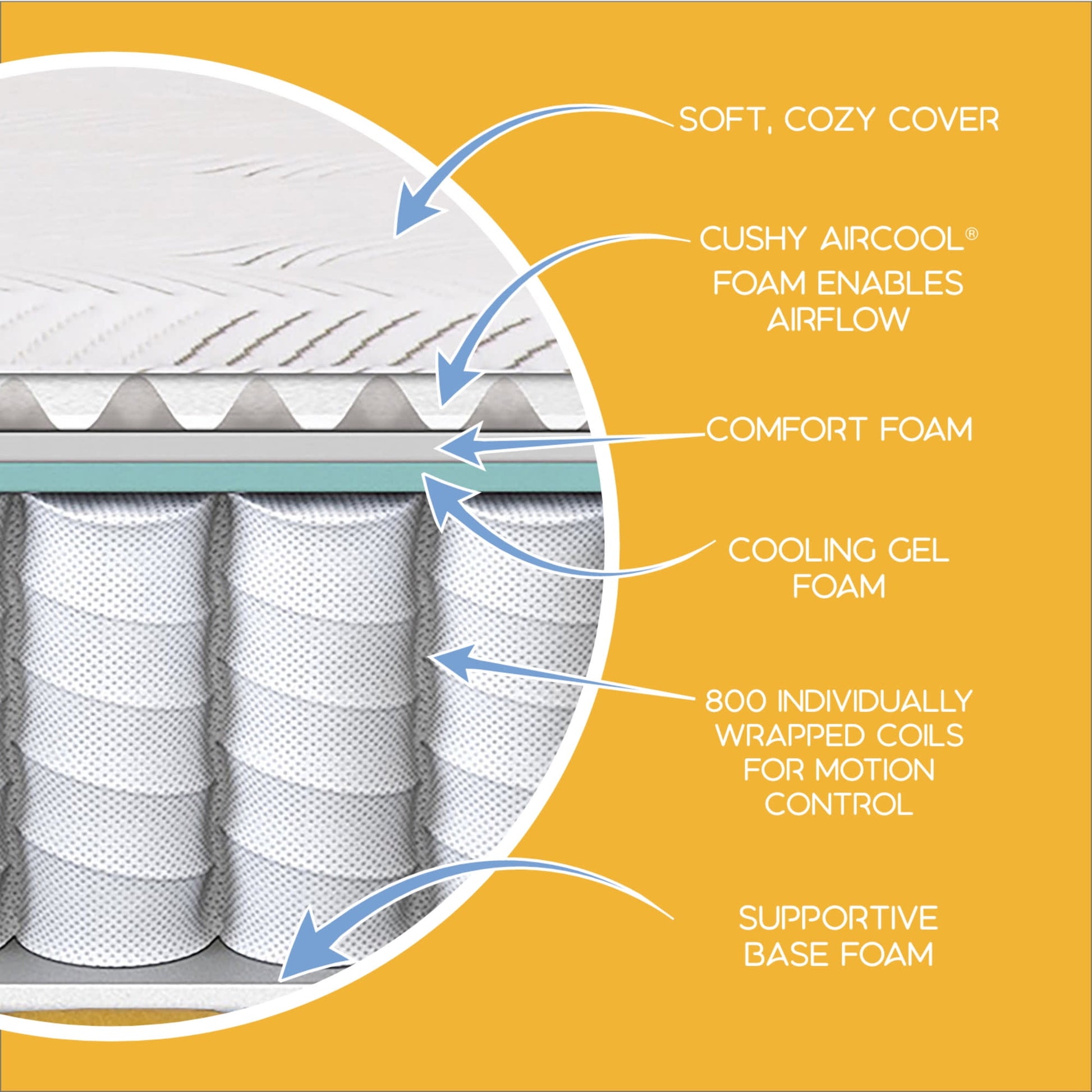 - Our cushy AirCool? foam enables airflow through your mattress to keep things chill while you sleep
