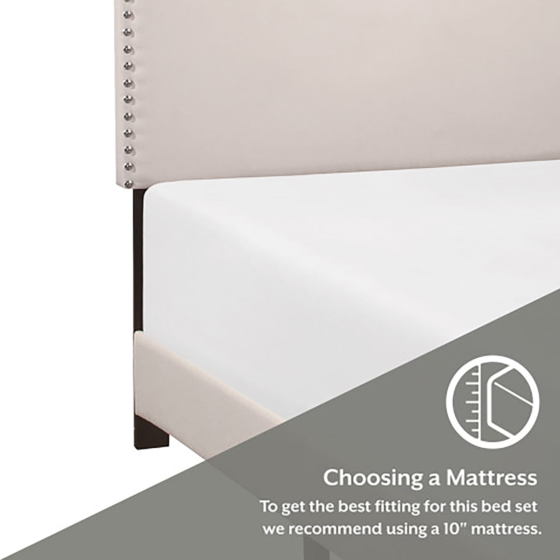 - Features an upholstered headboard with nailhead trim